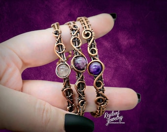 Wire Wrapped Super 7 Crystal Copper Bracelet - Handcrafted Hammered and Weaved Unique Copper Bracelet Cuff with Clasp - Any Wrist Size S 3XL