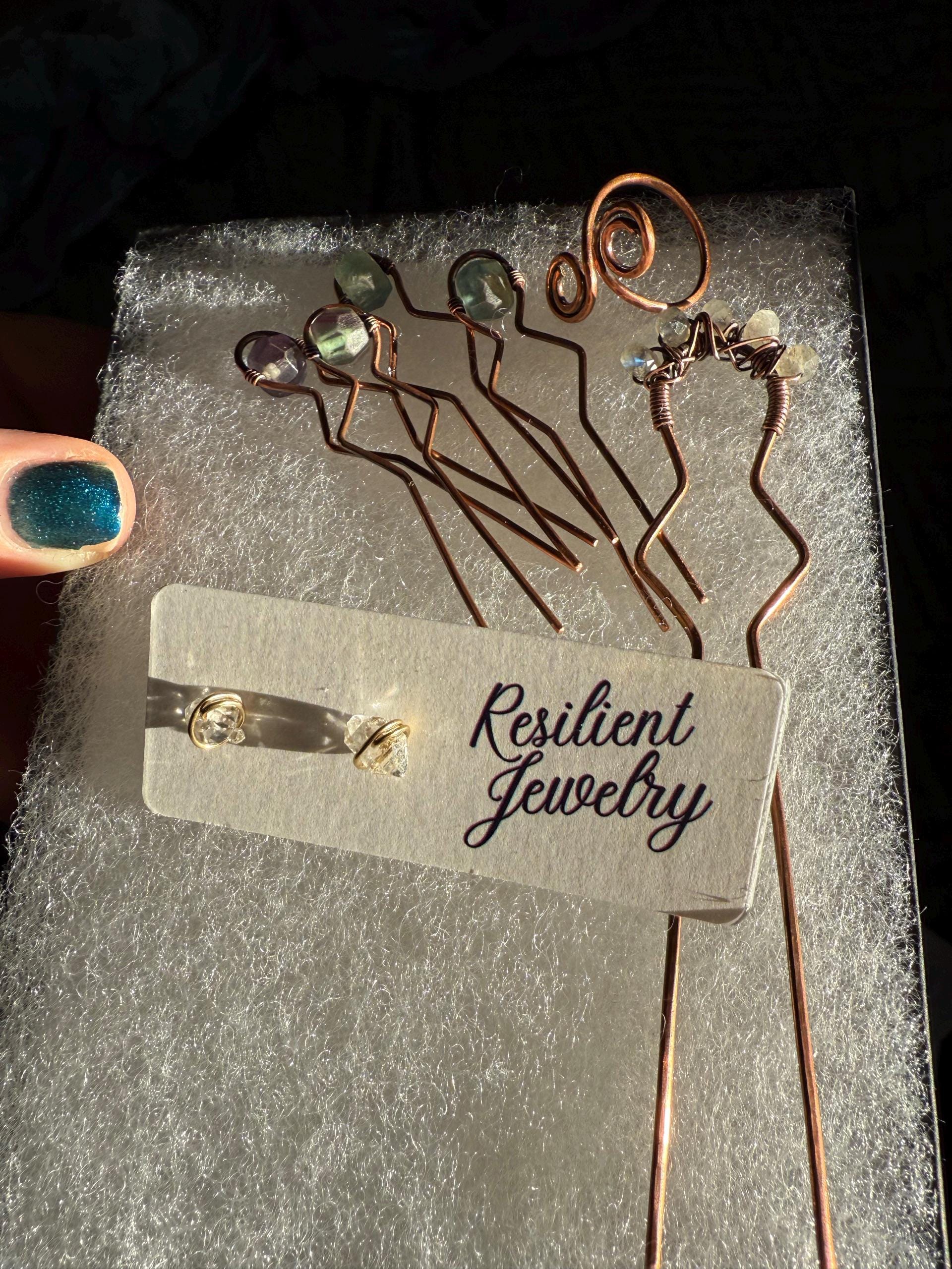 These pins are designed for both beauty and function, holding your hair securely while adding a touch of earthy elegance. Whether used in an everyday bun, a boho updo, or a special occasion hairstyle, these pins are both practical and enchanting.